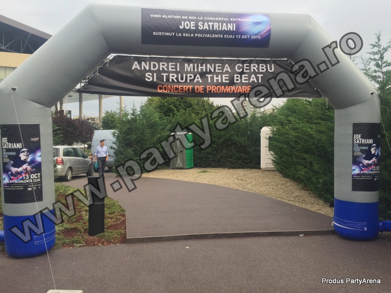 Arcada sau poarta gonflabila este o modalitate foarte buna de a marca o intrare, startul sau finalul unui eveniment sau al unei competitii. Creaza impact maxim mai ales la expozitii sau la evenimentele sportive. Se umfla rapid si se ancoreaza la sol pentru mai multa stabilitate. Nu se asigura sursa de curent electric pentru conectarea suflantei de aer. Se poate asigura transportul in Bucuresti, contra  cost, si montarea si demontarea (dureaza cca 15 min./produs). Pentru distante de pana la 50 de km de Bucuresti se taxeaza transportul 3 lei/km dus-intors. Pentru distante mai mari de 50 km de Bucuresti, produsul se ridica si se returneaza prin curier (contra cost) sau de catre Beneficiar, de la depozitul Furnizorului. La preluare se vor primi instructiunile de utilizare.